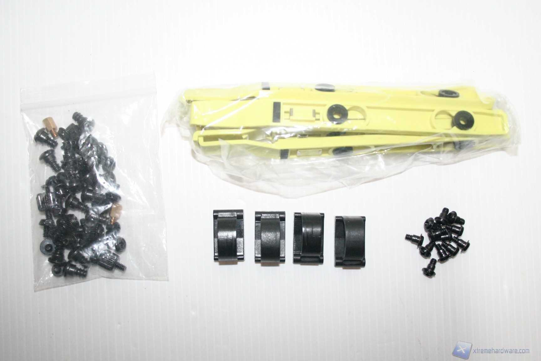 Il bundle in dotazione è particolare in quanto non ci sono le fascette fermacavo, che sono sostituite però da quattro supporti con adesivo alla base che permettono un buon cable routing. Come ventole ne troviamo 2 140mm (una sul top e una frontale), una 90mm (posteriore) e una 80mm di fronte agli HDD,[L1] una dotazione quindi di ottimo livello per un cabinet low-budget !