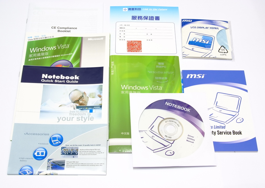 Accessori inclusi: Windows Vista Home Premium, garanzia prodotto, CD Driver e manuali d’uso